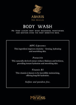 The Abaris Duo Pack from Simone Voss combines an indulgent body wash and hand & body lotion, both crafted with a luxurious blend of amber, bergamot, jasmine, musk, rose, and thyme.