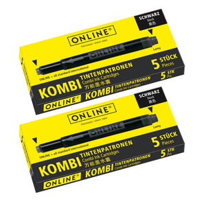 Refill your fountain pen with confidence using ONLINE Germany’s Kombi Ink Cartridges - a reliable choice for smooth, consistent writing. Each pack includes 10 high-quality cartridges filled with rich, fade-resistant ink that flows cleanly onto the page without skips or blotches.
