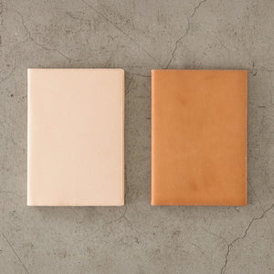 MD Product's goat leather notebook cover for the B6 Slim is a considered object: cut from a single piece of undyed, vegetable-tanned goatskin sourced from the highlands of Central Asia, it arrives pale and almost naked in appearance.